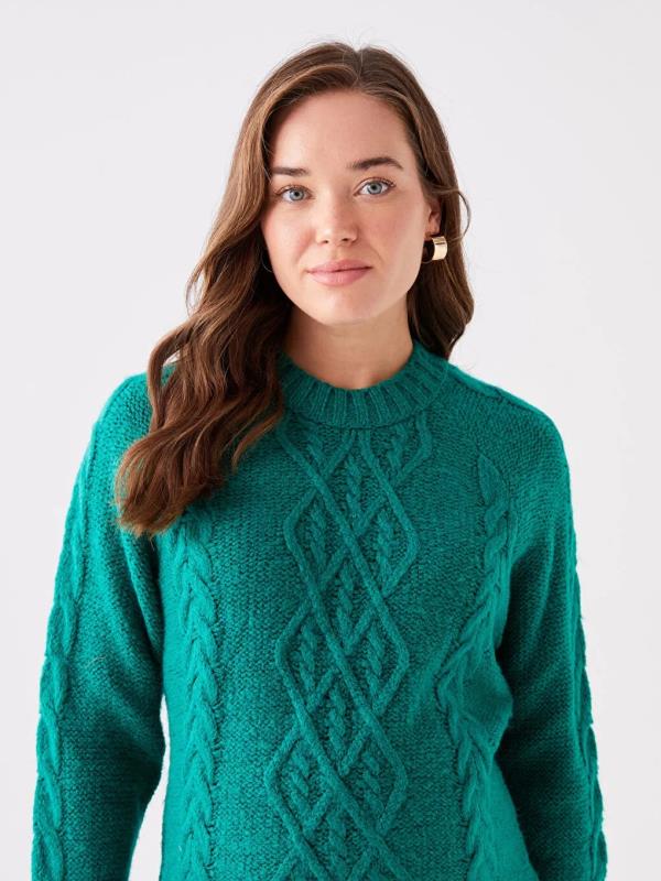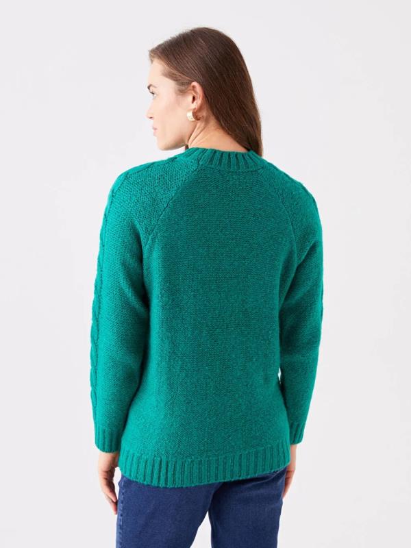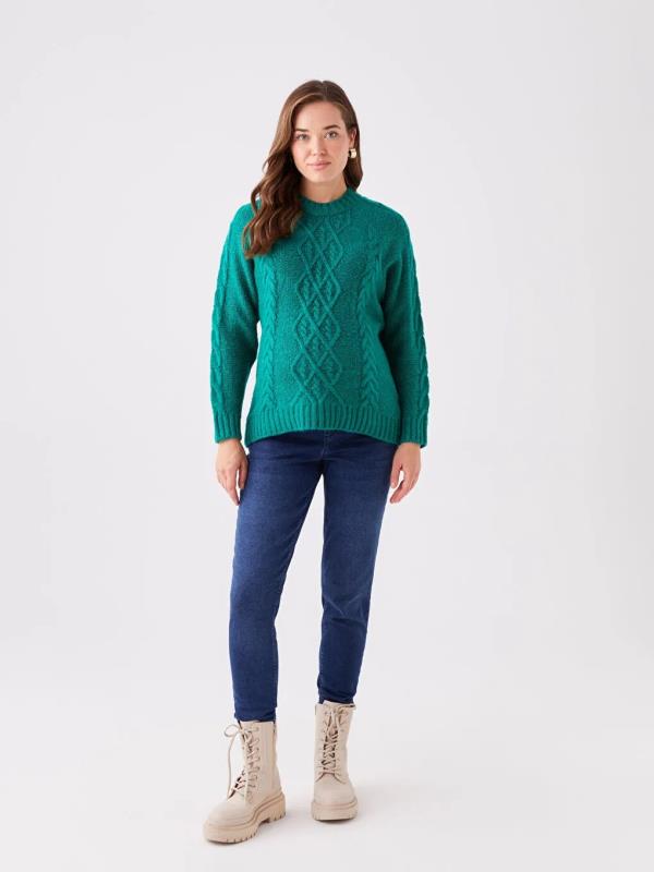 پلیور بافتنی آستین بلند با یقه گرد LCWAIKIKI Maternity سبز