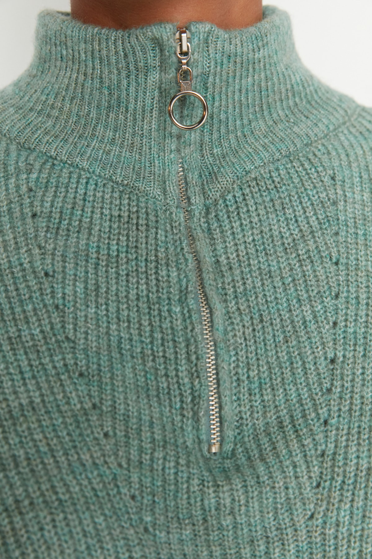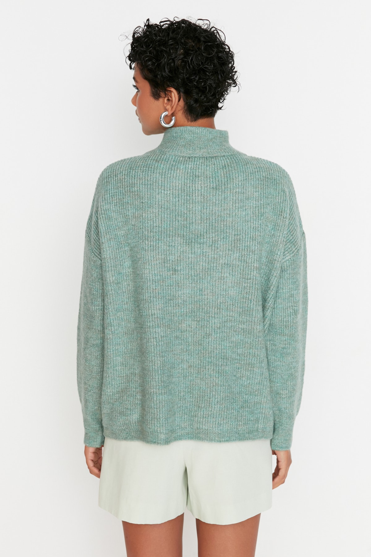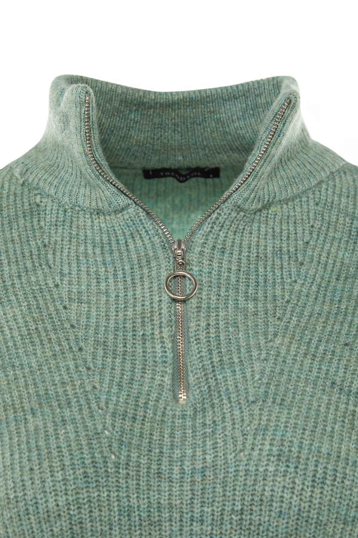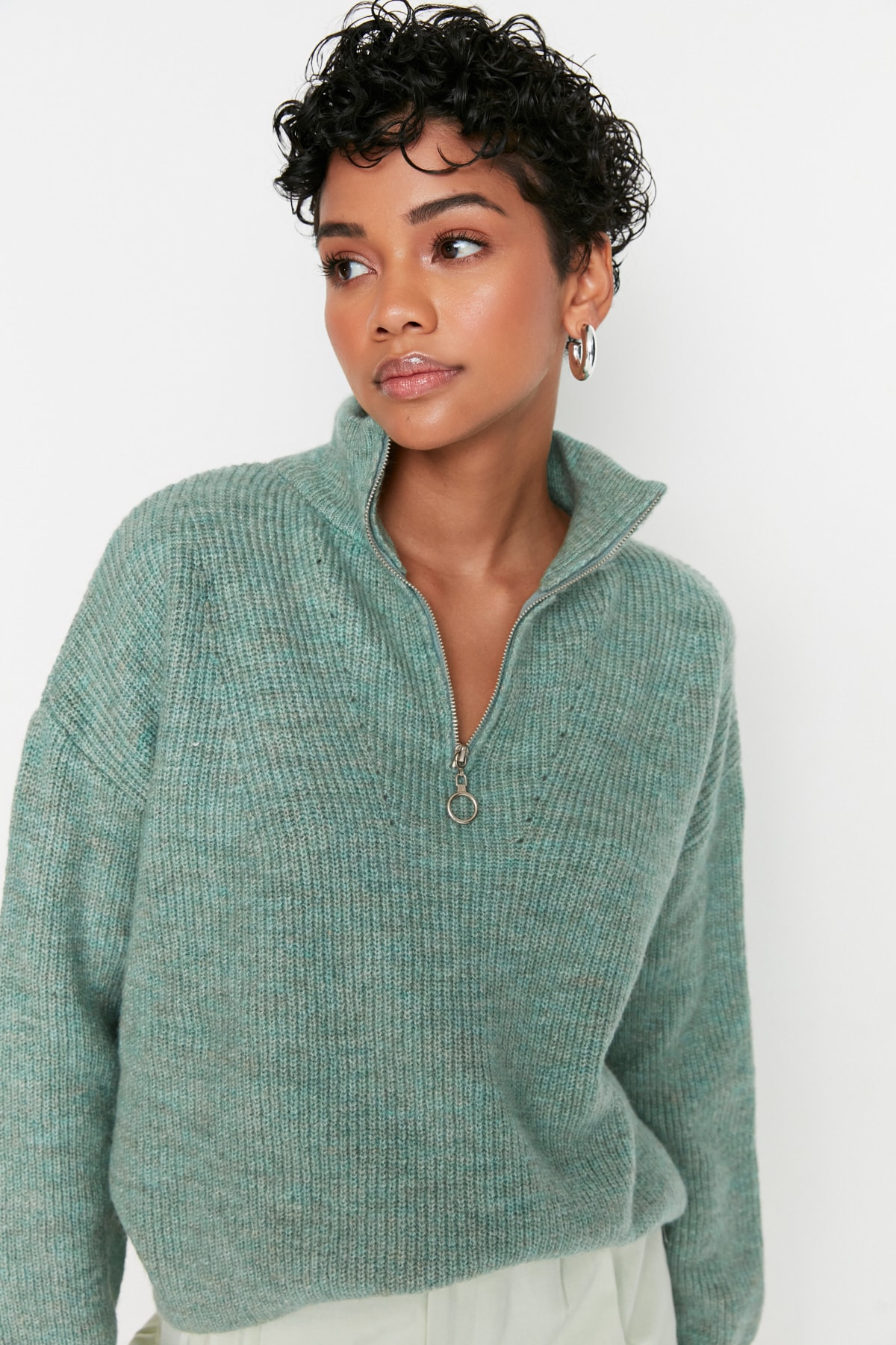 پلیورزنانه بافتنی زیپدار با بافت نرم trendyolmilla نعنائی