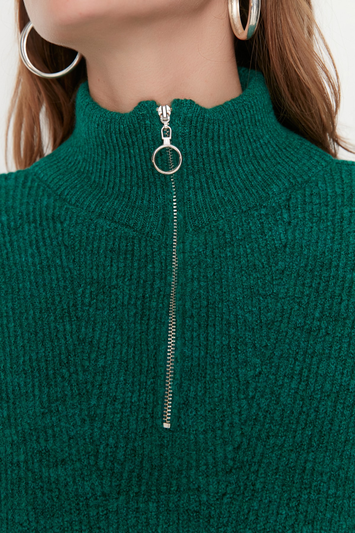 پلیورزنانه بافتنی زیپدار با بافت نرم trendyolmilla سبز