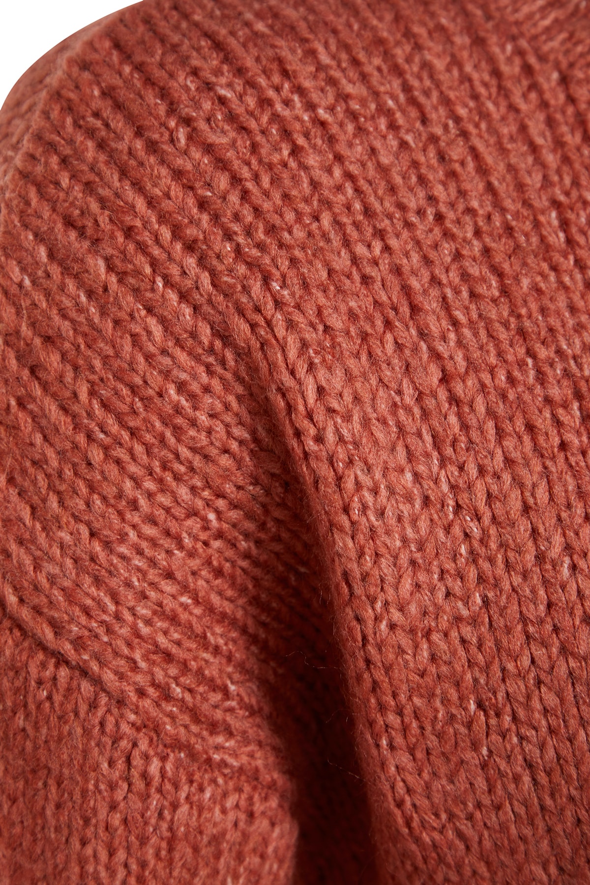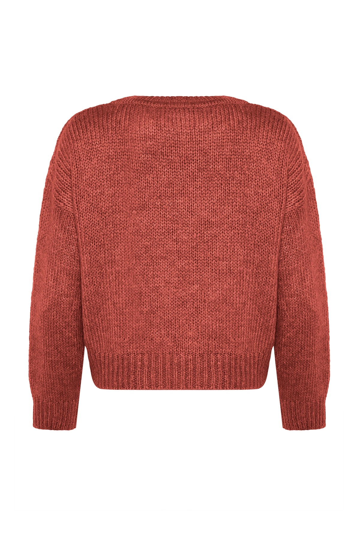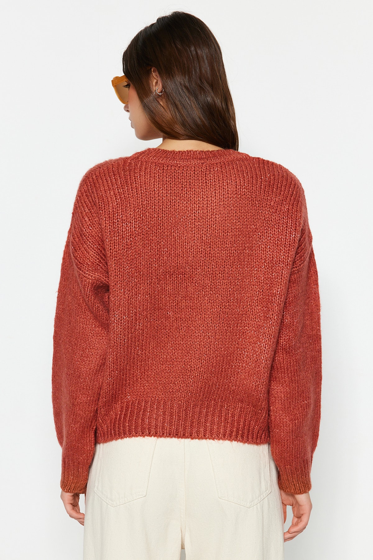 پلیور زنانه بافتنی ساده با برش پهن و بافت نرم دارچینی