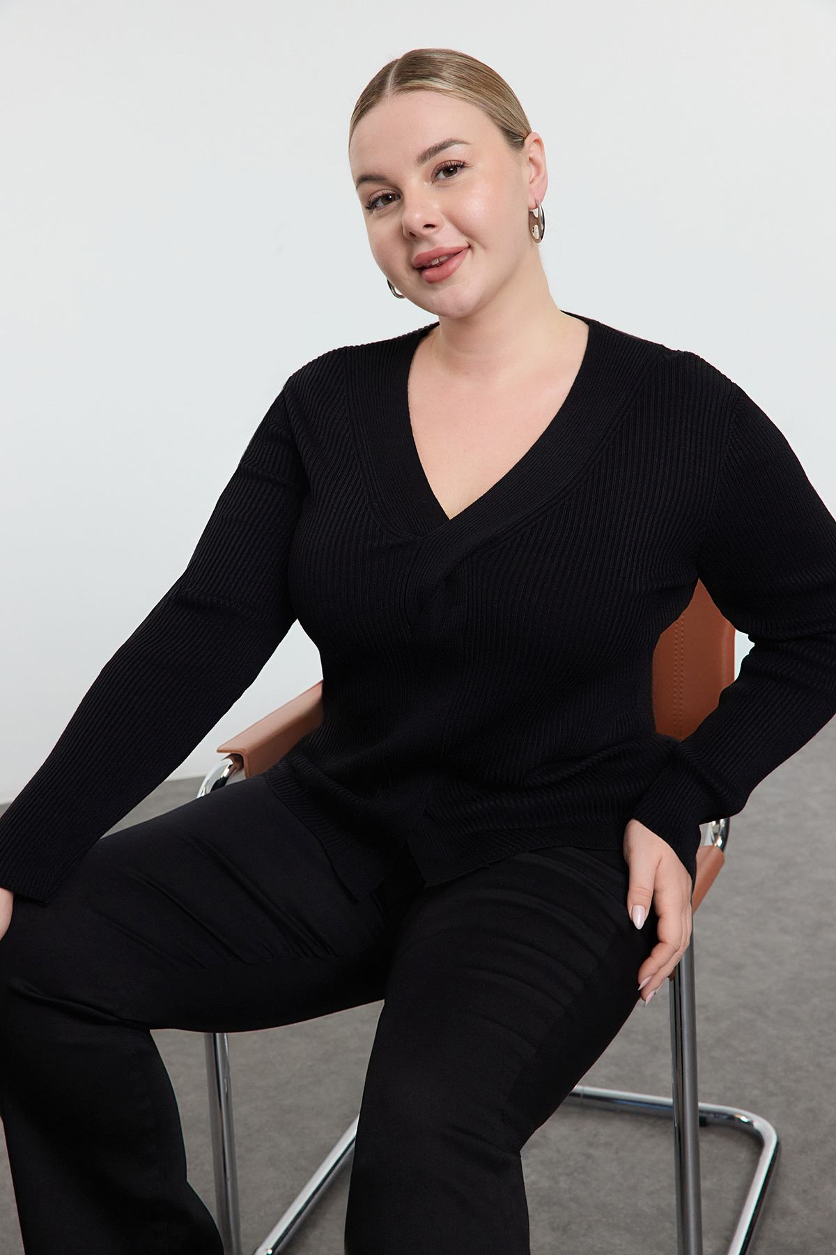 صفحه اصلی\همه پلیور ها\ژاکت بافتنی مشکی یقه هفت با جزئیات گره trendyolmilla