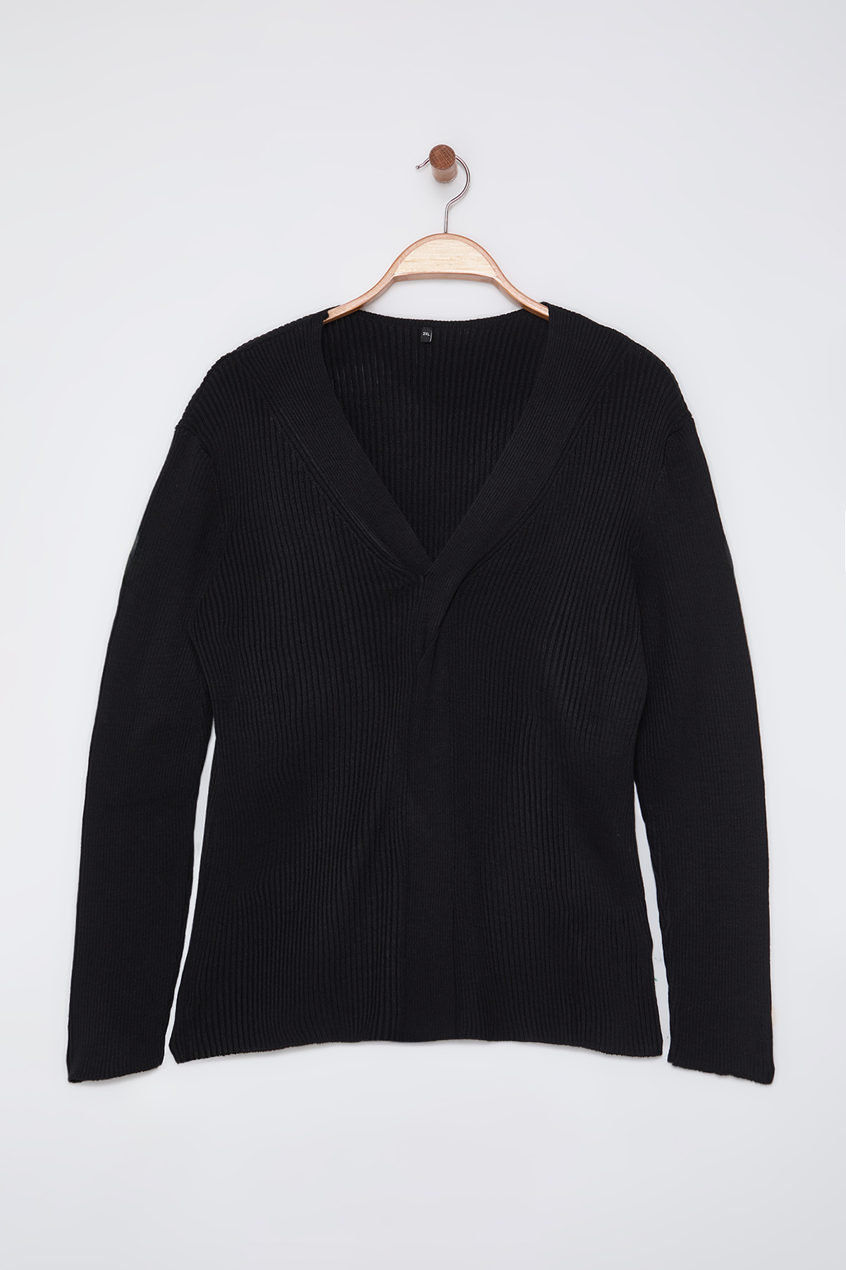 ژاکت بافتنی مشکی یقه هفت با جزئیات گره trendyolmilla