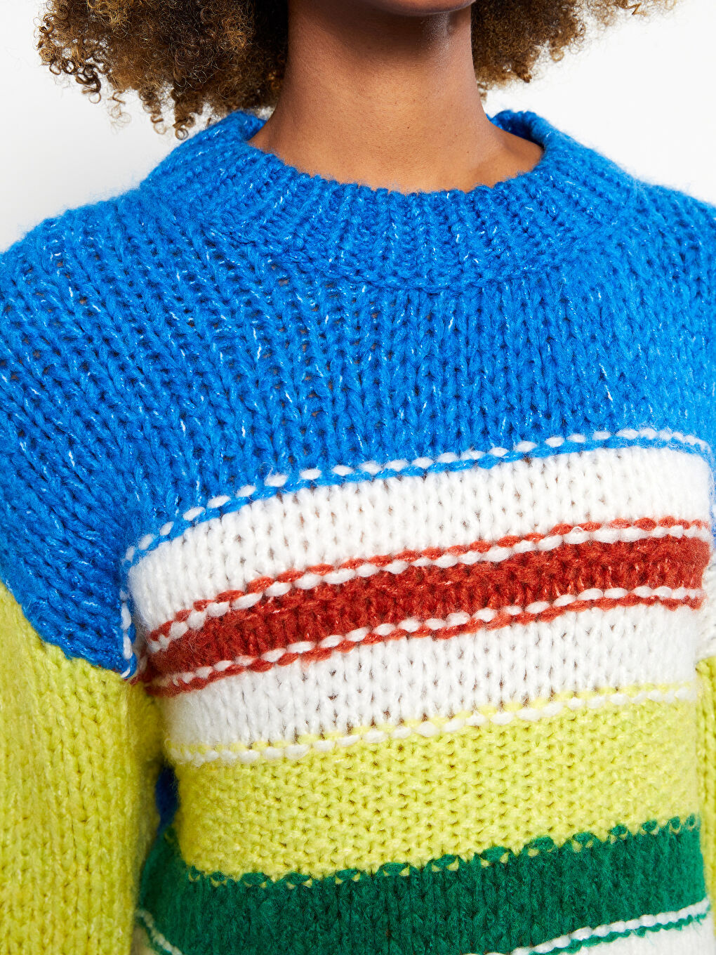 لباس بافتنی زنانه آستین بلند راه راه مخلوط lcw