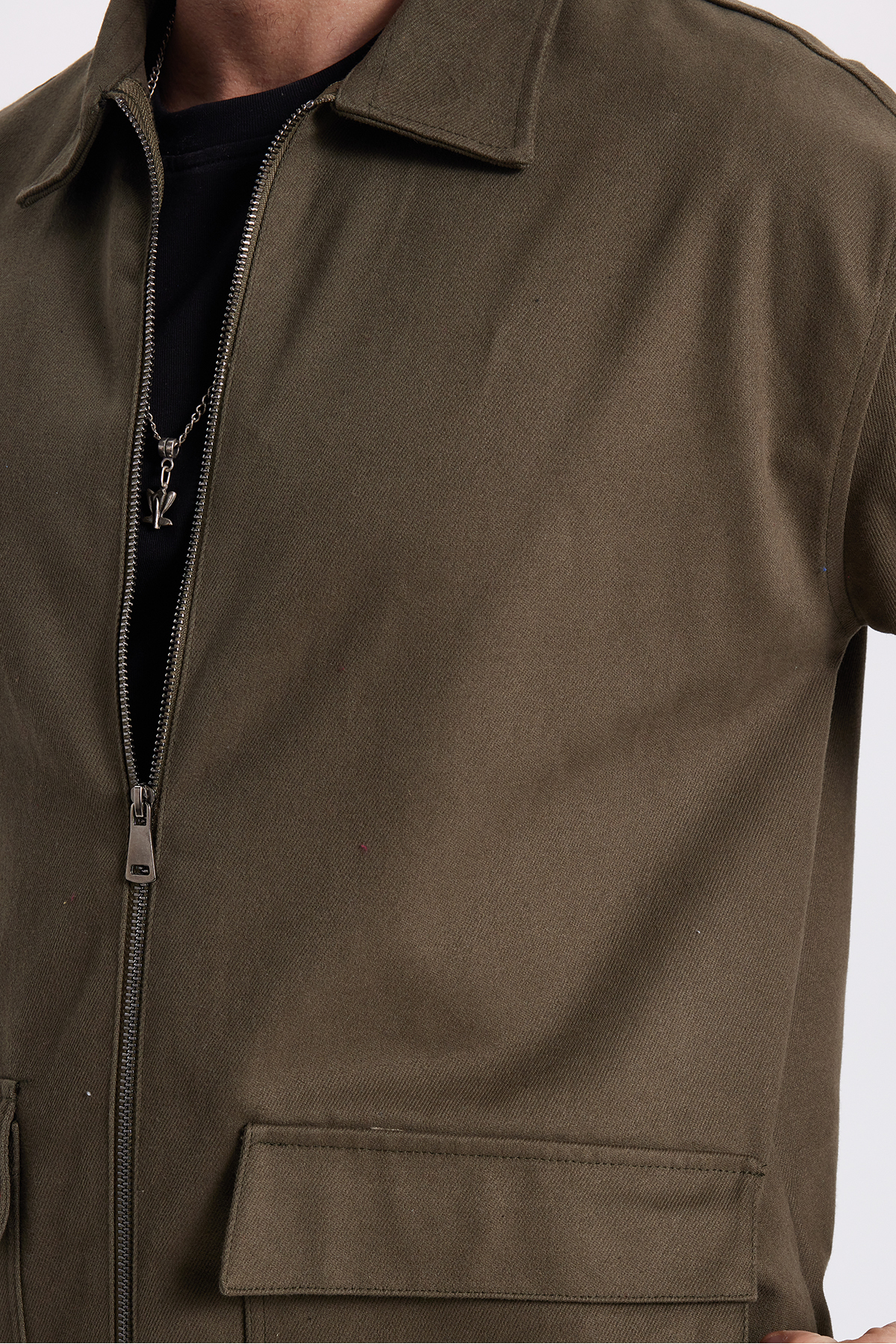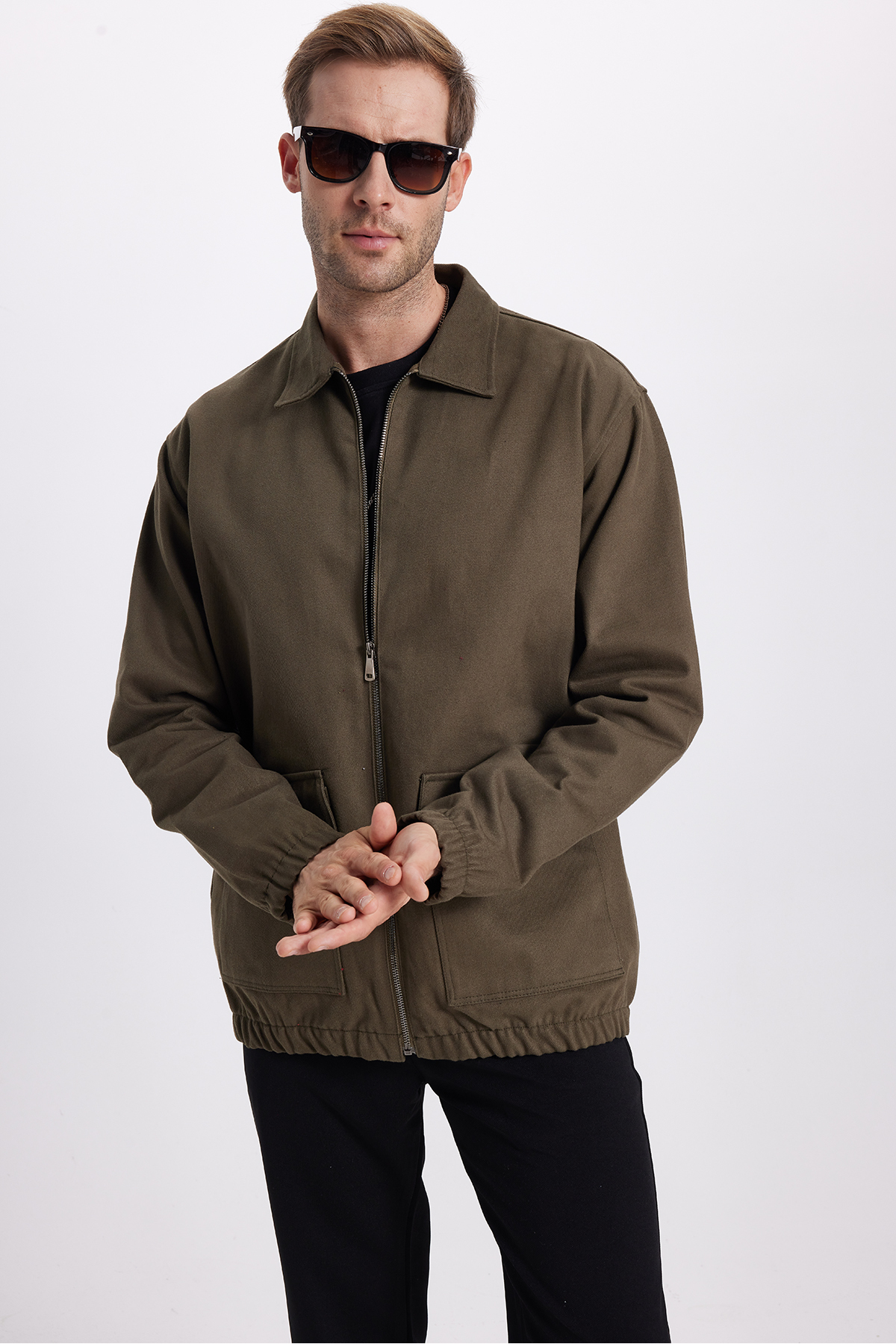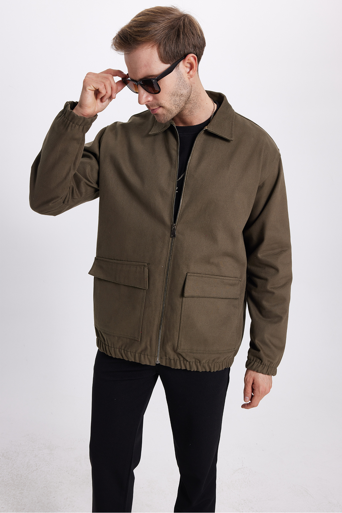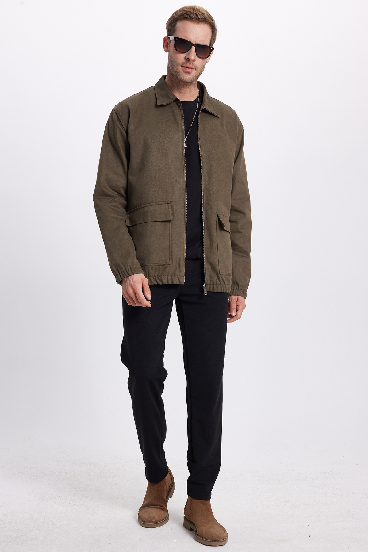 کت راحتی راحتی، دو جیب، کمر کشی، زیپدار، خاکی ساده tudors