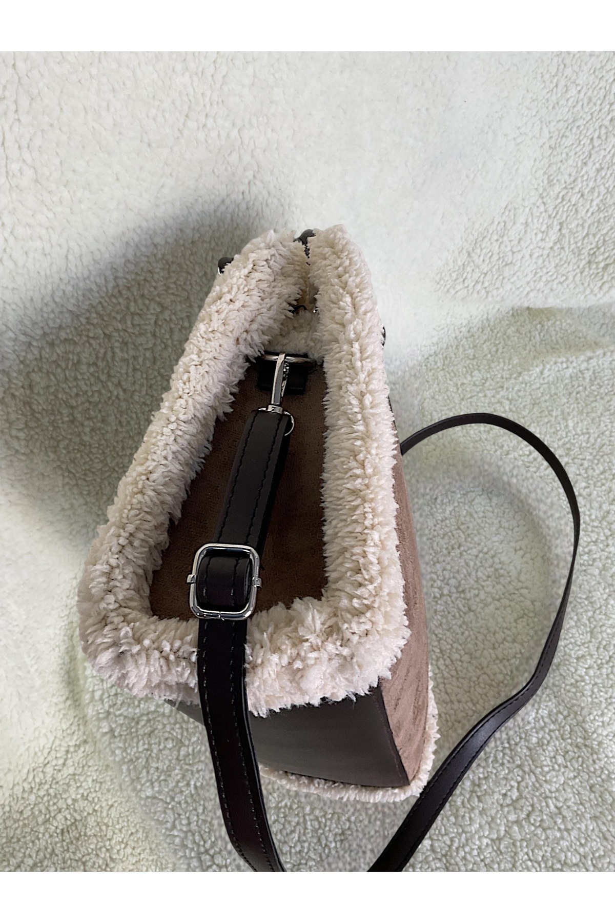 کیف زنانه بندی دوشی نبوک قهوه ای شیری Katusa