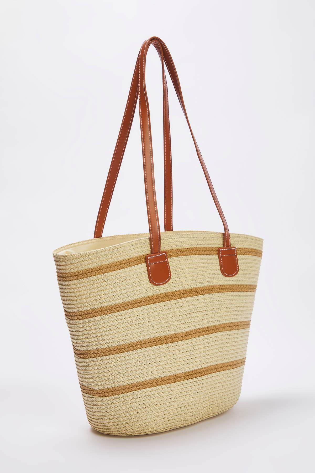 کیف دوشی زنانه بزرگ با دسته حصیری شتری trendyolmilla shoes