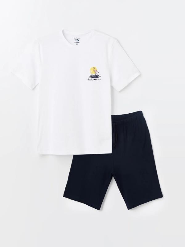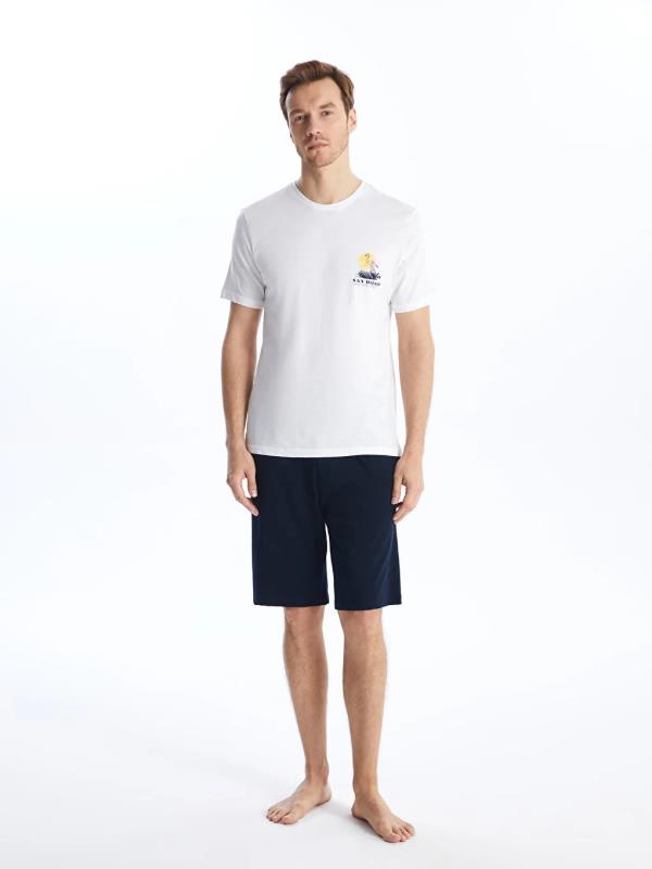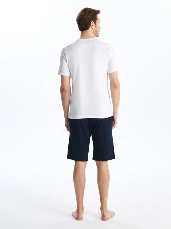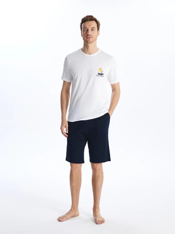 ست لباس خواب مردانه مدل استاندارد با شلوارک LCW DREAM سورمه ای