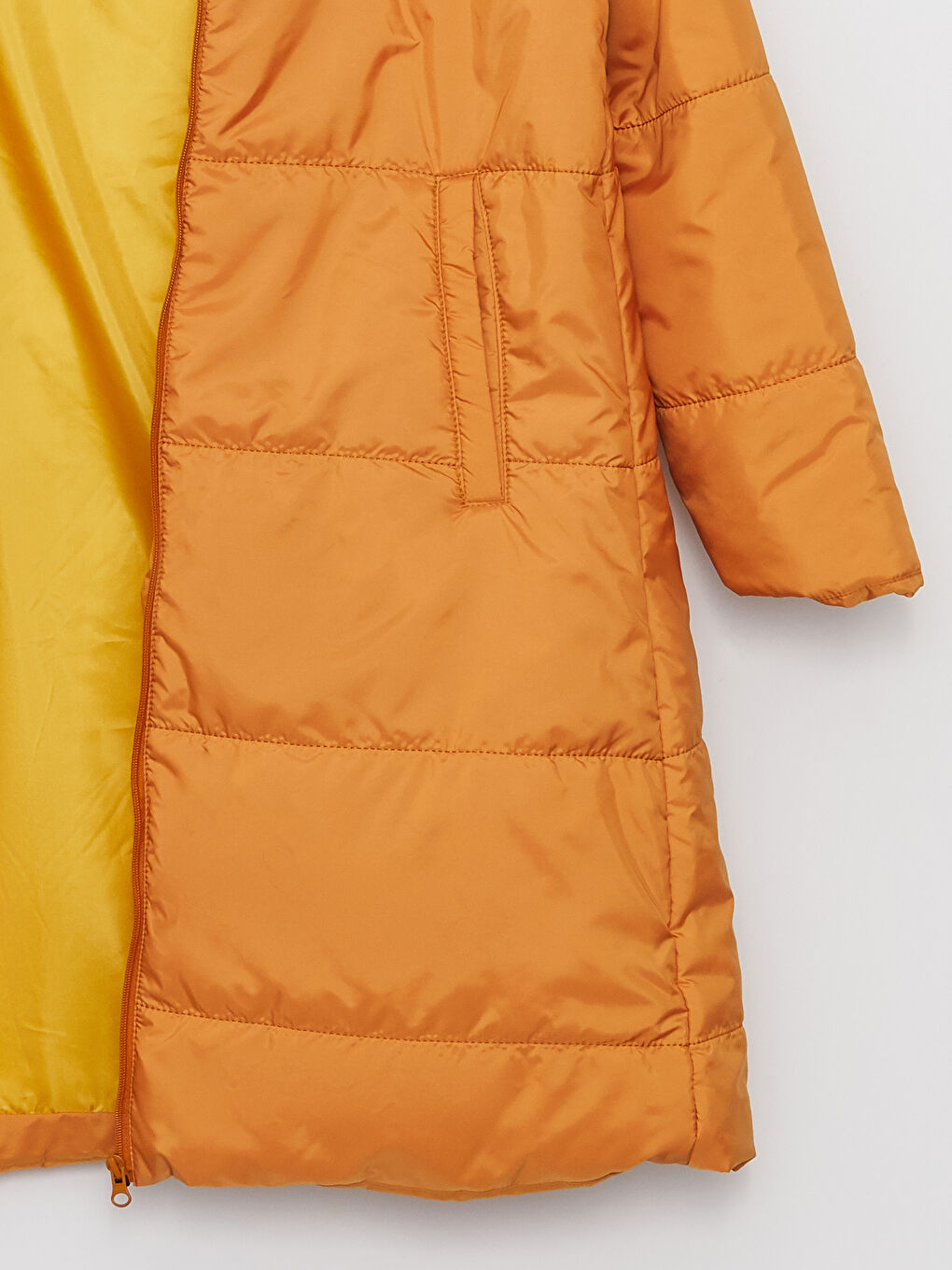 کاپشن زنانه بادی تخت کلاهدار نارنجی کمرنگ lcw